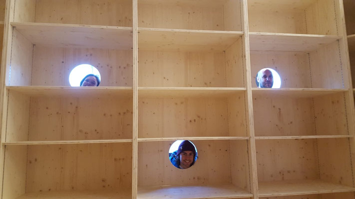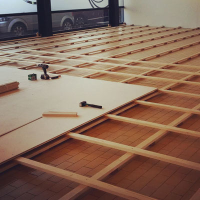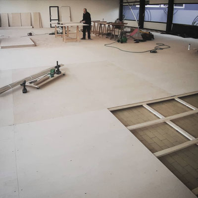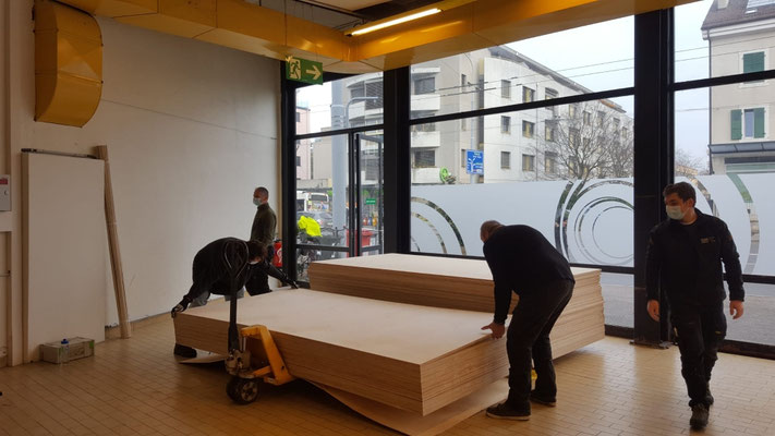 Des aménagements étaient nécessaires afin d’adapter le lieu aux besoins de la création: plancher de danse, espace de rangement et de bricolage, loges des artistes et paravents modulables ont transformé cette arcade en un magnifique espace de création, dédié aux arts vivants, dont la danse, la marionnette et surtout le théâtre dans l’espace public.