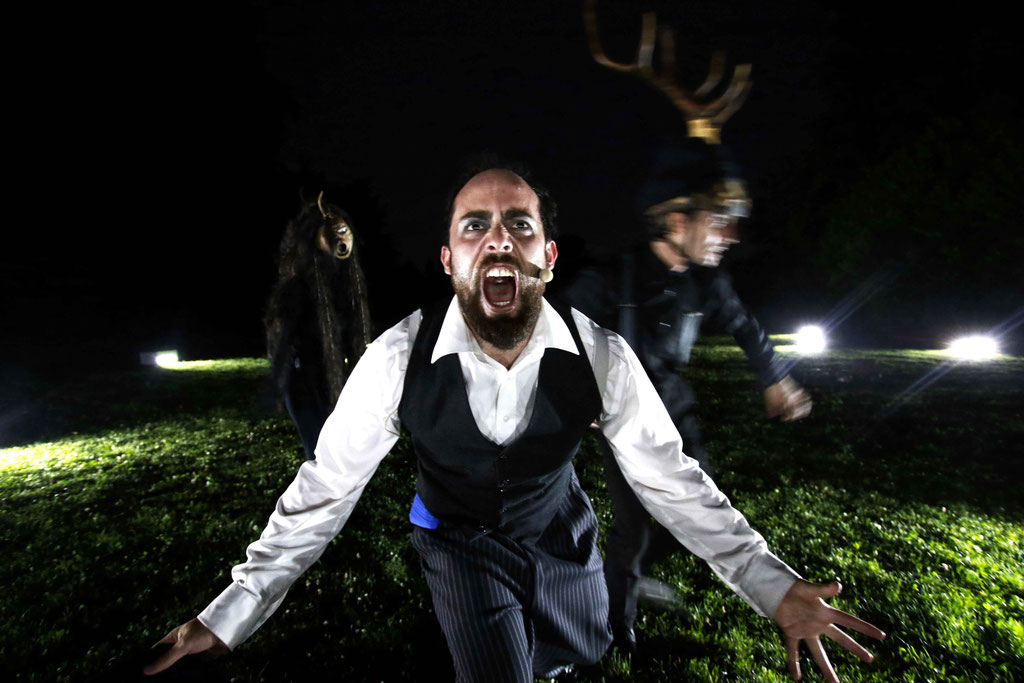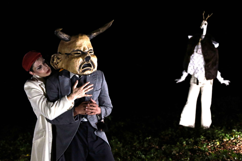 Dans un bois au crépuscule surgissent des figures masquées et cornues. Un appel impérieux entraîne le personnage d’un historien à quitter son chez-soi. Au long d’un voyage onirique, il rencontre des monstres bizarres et sympathiques, les combat, danse avec eux. Il découvre la face étrange et sauvage de son intériorité, s’y heurte, tente de s’échapper, se hasarde à faire face. En chemin, il reconnait son ombre qui se dérobe.